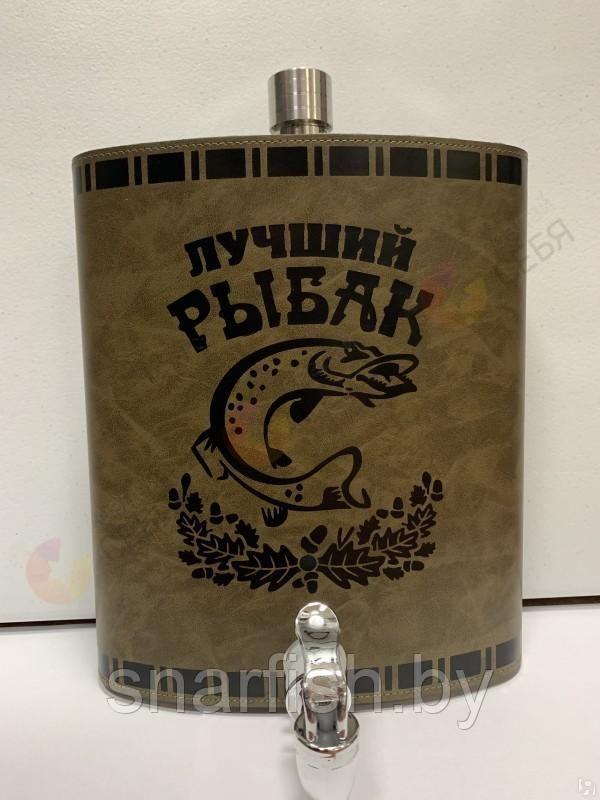Фляга с краном подарочная 128оz (3584гр.) металлическая, в кожаном переплете "Лучший рыбак"