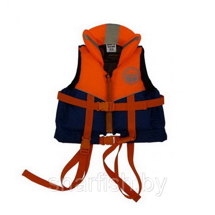 Детский спасательный жилет изготовлен специально для детей,что бы их безопасность на воде была максимальной. На жилете предусмотрен подголовник для поддержания головы на воде, регулирующимися паховыми ремнями для предотвращения всплытия жилета отдельно от владельца, световозвращающими лентами и кантом для отражения света в тёмное время суток, ручкой со стороны спины для удобства подъема ребенка на борт. Сигнальным свистком, для подачи звукового сигнала. Фиксация спасательного жилета осуществляется с помощью застежки «молния» и пряжками «фастекс» регулирующими ленту по объёму тела.